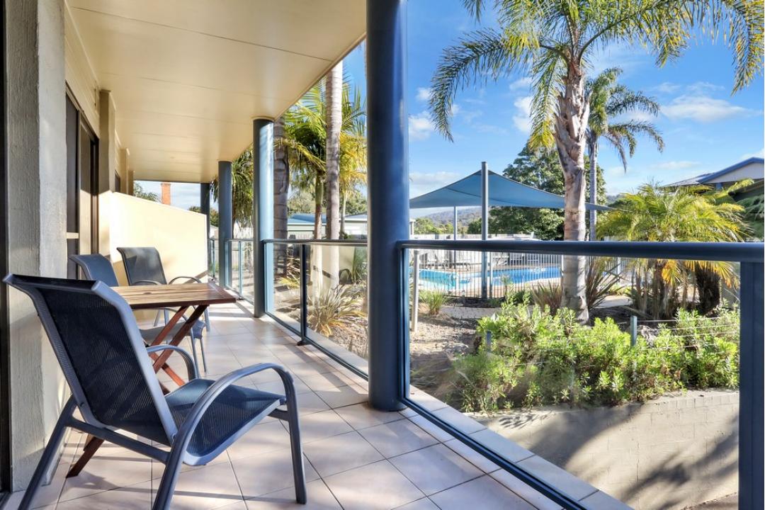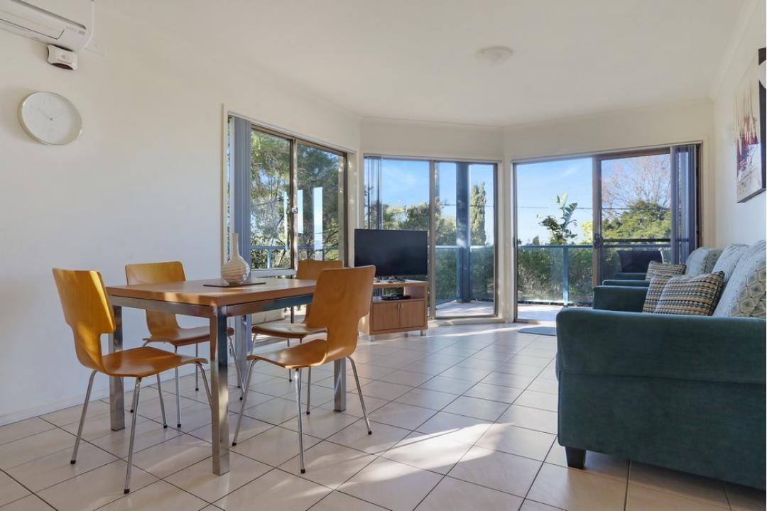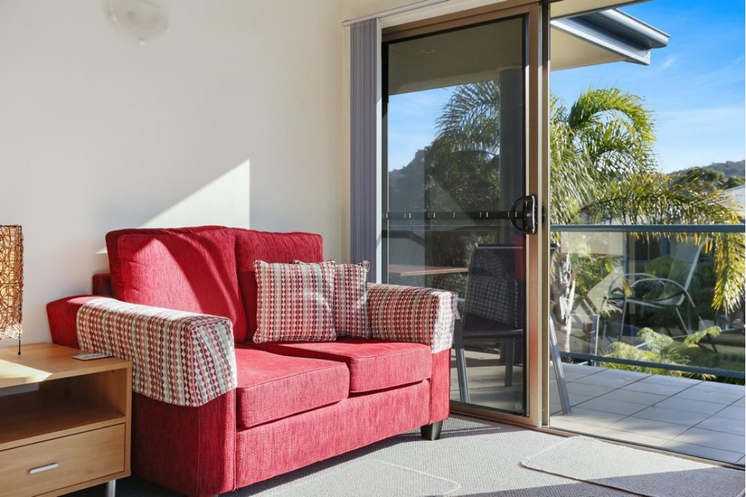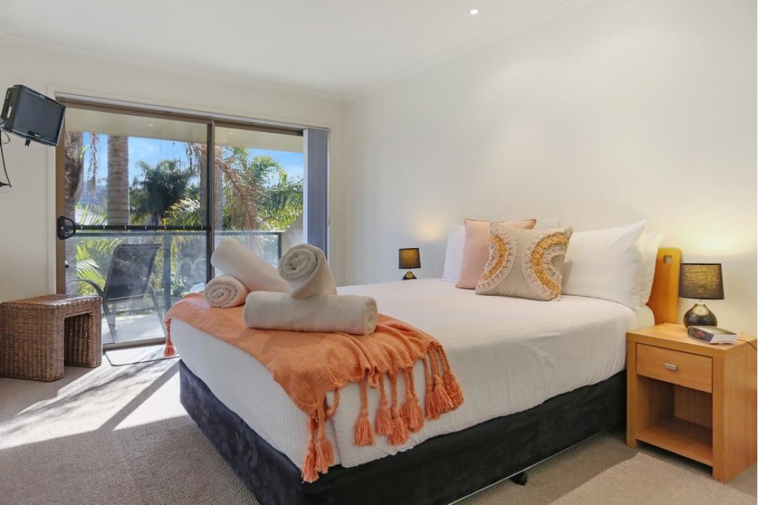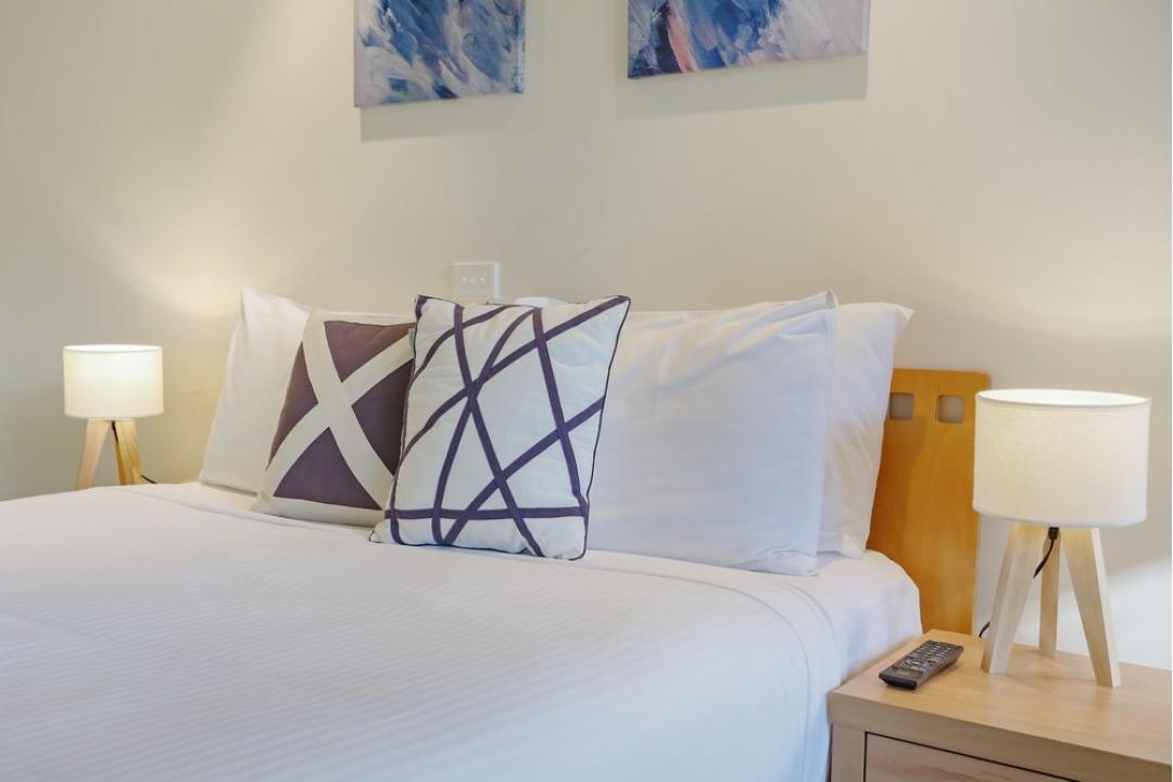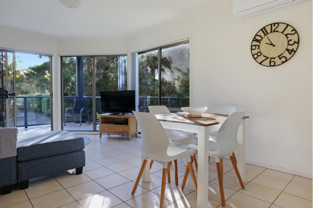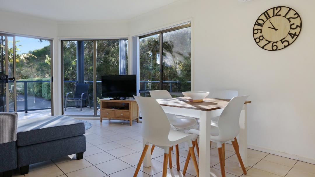 The one-bedroom apartments at Sorrento Merimbula are fully self-contained and equipped with modern amenities.