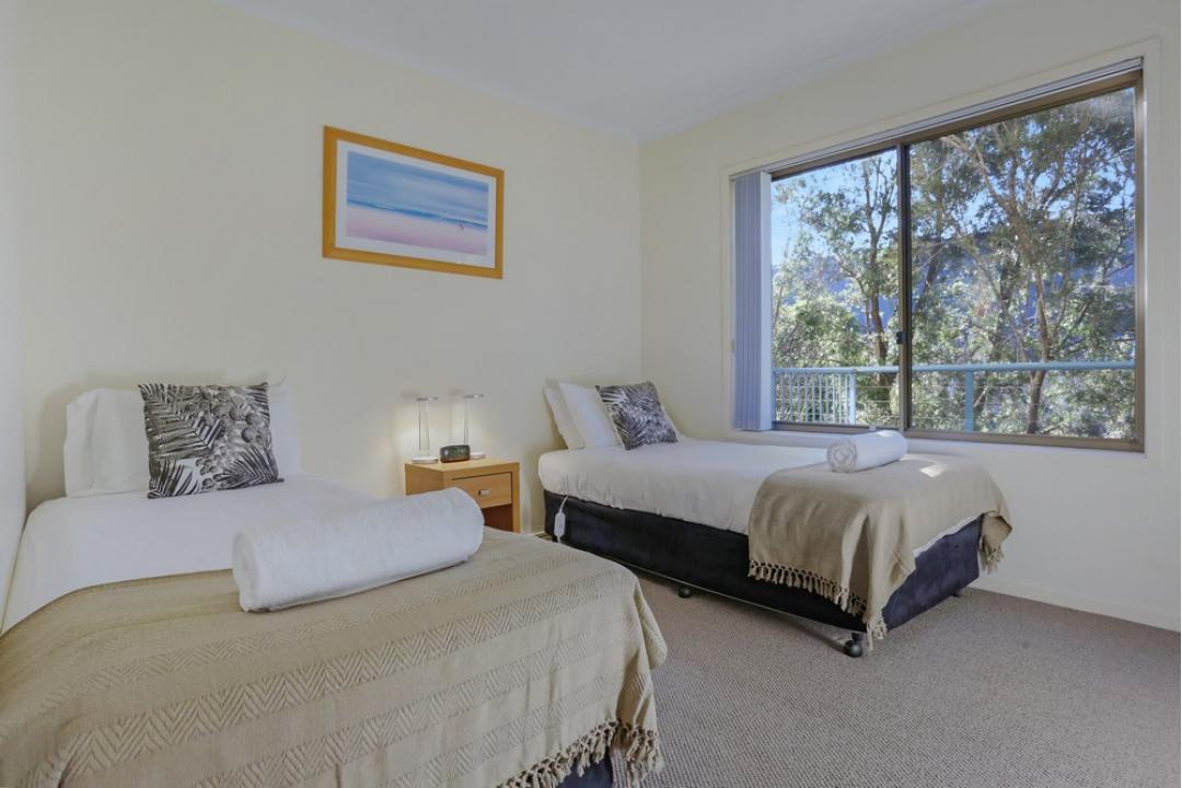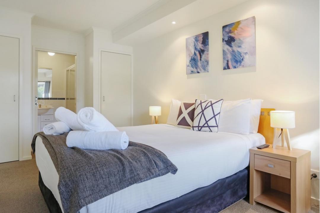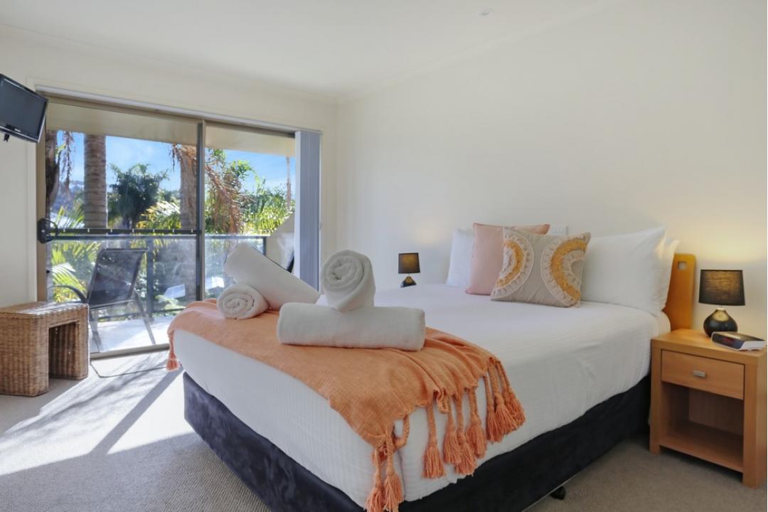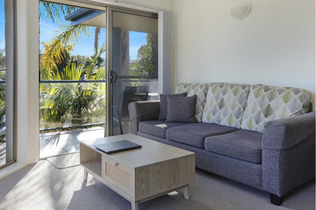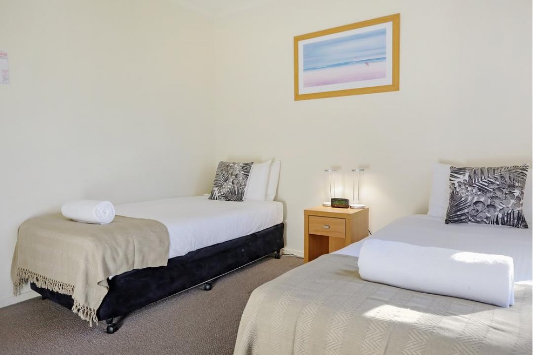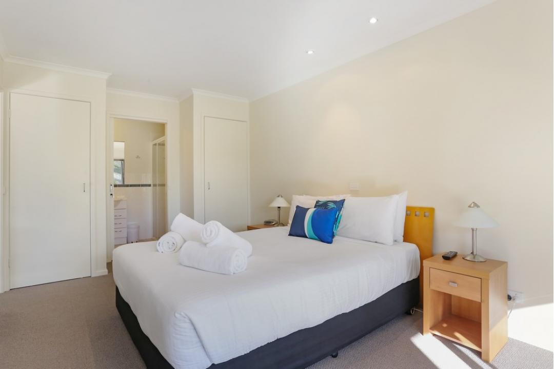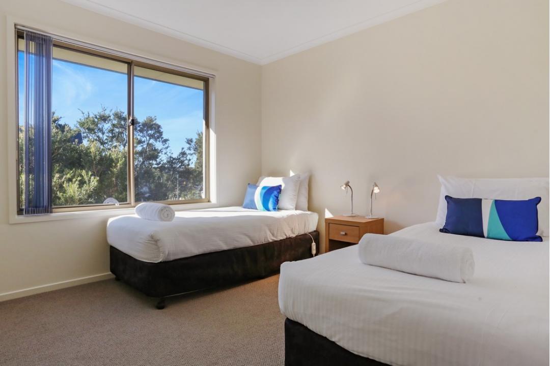 The two-bedroom apartments at Sorrento Merimbula offer spacious, self-contained accommodation with modern furnishings.